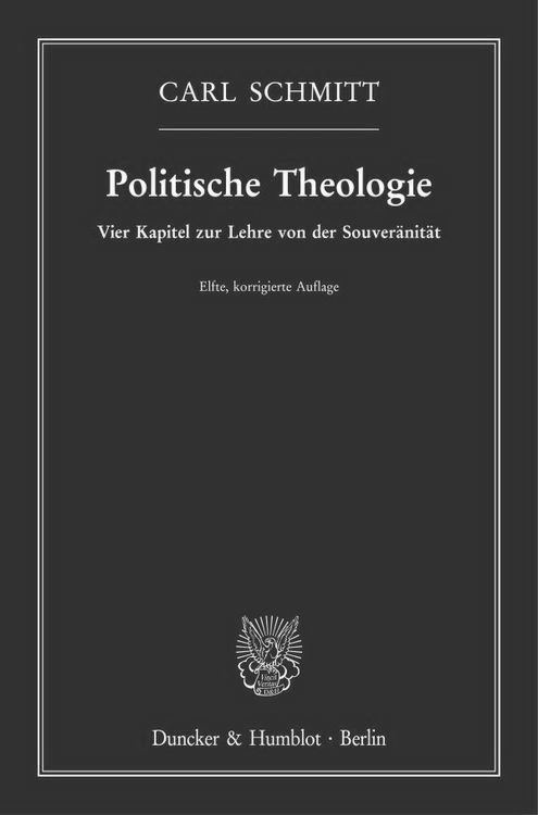 - Carl Schmitt, Politische Theologie. Vier Kapitel zur Lehre von der Souveränität, Berlin 1922. Der Eröffnungssatz lautet: „Souverän ist, wer über den Ausnahmezustand entscheidet."